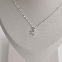 Conjunto brinco e colar flor cravejada 12mm 45cm | Mya Prata