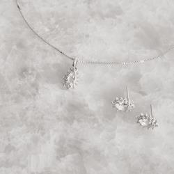 Conjunto brinco e colar zircônia navete cristal com cravejado 9mm 45cm | Mya Prata