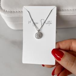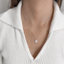 Colar pingente redondo cravejado 10mm 45cm | Mya Prata