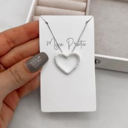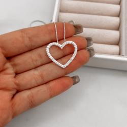 Colar coração vazado cravejado 23mm 45cm | Mya Prata