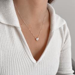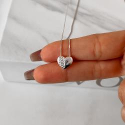 Colar coração metade cravejado 10mm 45cm | Mya Prata