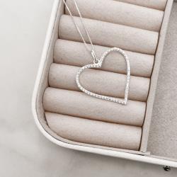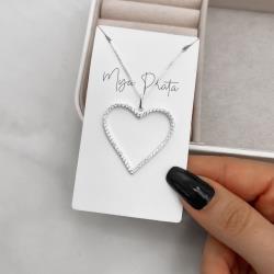 Colar pingente coração vazado cravejado 33mm 45cm | Mya Prata