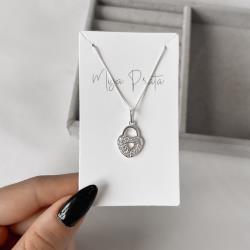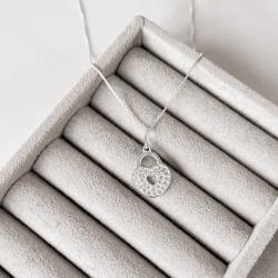 Colar pingente cadeado coração cravejado 16mm 45cm | Mya Prata