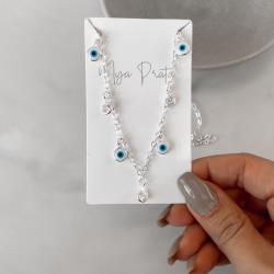 Choker pingentes olhos gregos e zircônias corrente cadeado | Mya Prata