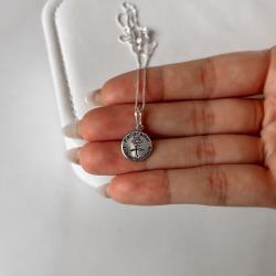 Colar pingente medalha plantar amor, colher felicidade envelhecido 12mm 45cm | Mya Prata