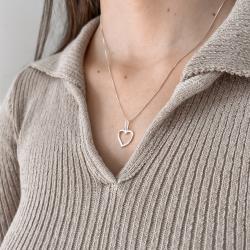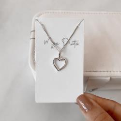 Colar pingente coração vazado direito 15mm 45cm | Mya Prata