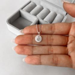 Colar pingente medalha letra Q 10mm 40cm | Mya Prata