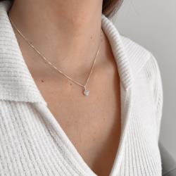 Colar pingente coração cravejado 6mm 40cm | Mya Prata