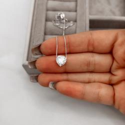 Colar coração cravejado com zircônia coração passante 8mm 45cm | Mya Prata