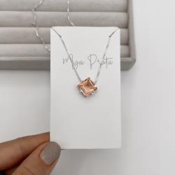 Colar zircônia losango rosê 14mm 45cm | Mya Prata