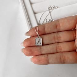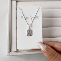 Colar pingente placa letra A 12mm 45cm | Mya Prata
