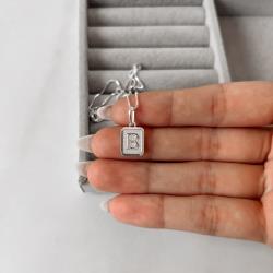 Colar pingente placa letra B 12mm 45cm | Mya Prata