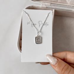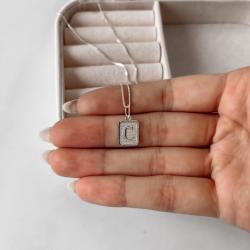 Colar pingente placa letra C 12mm 45cm | Mya Prata
