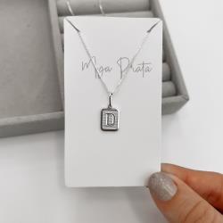 Colar pingente placa letra D 12mm 45cm | Mya Prata