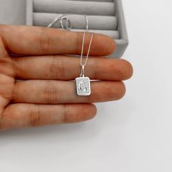 Colar pingente placa letra G 12mm 45cm | Mya Prata