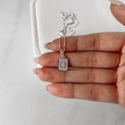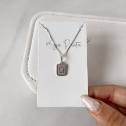 Colar pingente placa letra Q 12mm 45cm | Mya Prata