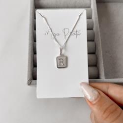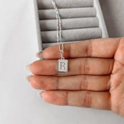 Colar pingente placa letra R 12mm 45cm | Mya Prata