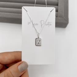 Colar pingente placa letra Z 12mm 45cm | Mya Prata