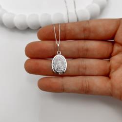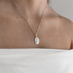 Colar pingente medalha Nsa. Sra. Aparecida 20mm 45cm | Mya Prata