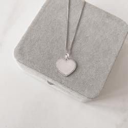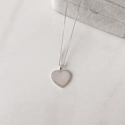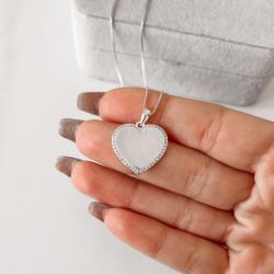Colar pingente coração borda cravejada 17mm 45cm | Mya Prata