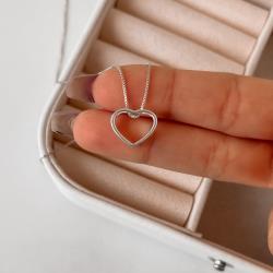 Colar coração vazado escrito amor resina 11mm 45cm | Mya Prata