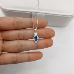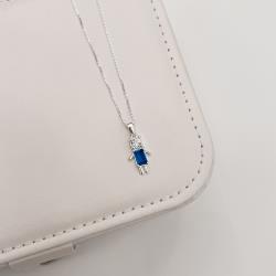 Colar pingente menino zircônia azul marinho 15mm 45cm | Mya Prata
