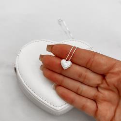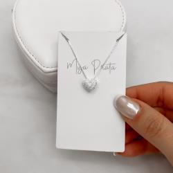 Colar coração cravejado 9mm 40cm | Mya Prata