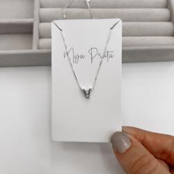 Colar letra V detalhe zircônia 7mm 45cm | Mya Prata