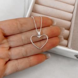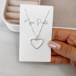 Colar coração vazado elo cravejado 20mm 45cm | Mya Prata