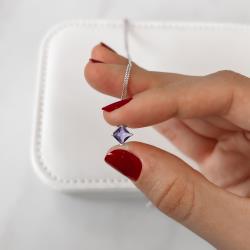 Colar zircônia losango lilás 8mm 40cm | Mya Prata