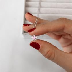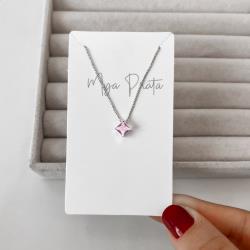 Colar zircônia losango rosa 8mm 40cm | Mya Prata