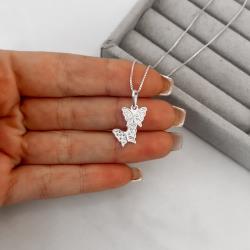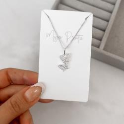 Colar pingente borboletas cravejadas 15mm 45cm | Mya Prata