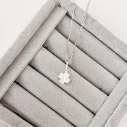 Colar pingente trevo com zircônias 11mm 45cm | Mya Prata