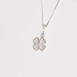 Descrição: Colar pingente trevo com zircônias 11mm 45cm fabricado(a) em prata