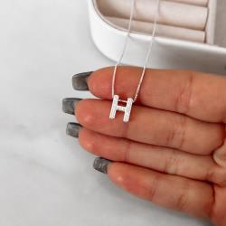 Colar letra H cravejada 10mm 45cm | Mya Prata