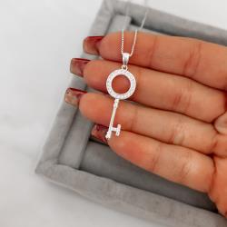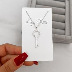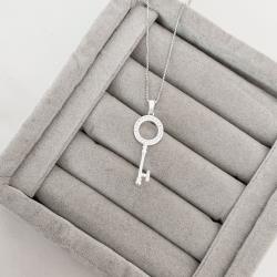 Colar pingente chave cravejada 29mm 45cm | Mya Prata