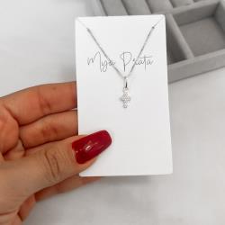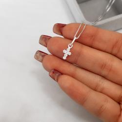 Descrição: Colar pingente cruz cravejada 8mm 40cm fabricado(a) em prata
