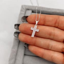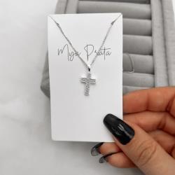 Colar pingente cruz renda Italiana 15mm 40cm | Mya Prata