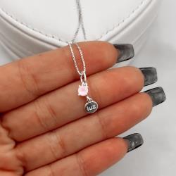 Descrição: Colar pingente zircônia rosa leitoso 4mm com placa escrito luz 6mm 40cm fabricado(a) em prata
