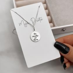 Colar pingente medalha eu escolho ser forte 15mm 45cm | Mya Prata