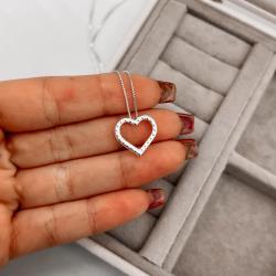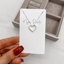 Colar coração vazado com bolinhas 15mm 45cm | Mya Prata