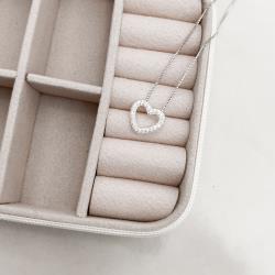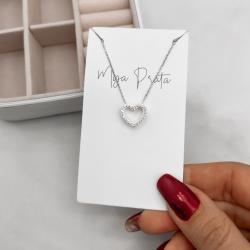 Colar coração vazado todo cravejado 13mm 45cm | Mya Prata