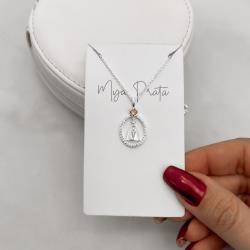 Colar medalha Nsa. Sra. Aparecida vazada cravejada zircônia rosê 20mm corrente cadeadinho 45cm | Mya Prata