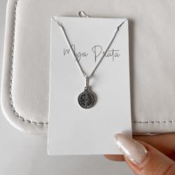 Colar pingente medalha rosa dos ventos 45cm | Mya Prata