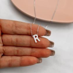Colar letra R cravejada 10mm passante 45cm | Mya Prata