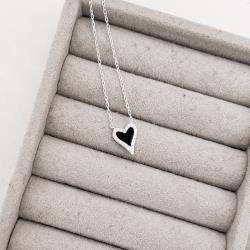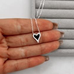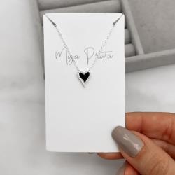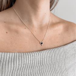 Colar coração pedra ônix com cravejado 11mm corrente cadeado 45+5cm | Mya Prata