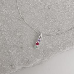 Colar pingente 3 zircônias coloridas 12mm 45cm | Mya Prata