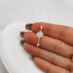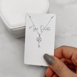 Colar pingente chave detalhe flocos de neve 24mm 45cm | Mya Prata
