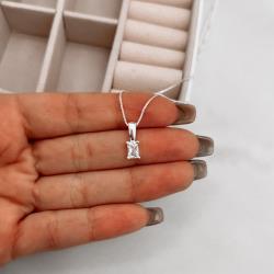 Descrição: Colar pingente zircônia retangular 7mm 40cm fabricado(a) em prata
