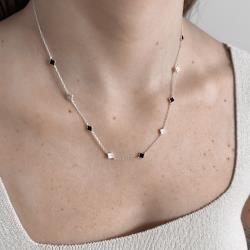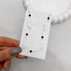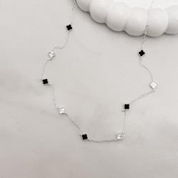 Colar entremeio trevos pedra ônix e vinco 5mm corrente cadeado 45+5cm | Mya Prata